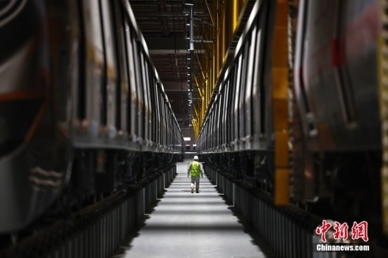 2月20日,工作人員在北京地鐵12號(hào)線東壩車輛段巡查列車。北京地鐵12號(hào)線正線全長為29.6km,西起西四環(huán)四季青橋南,東至東壩北街,途經(jīng)海淀、西城、東城、朝陽四個(gè)行政區(qū),全線共設(shè)21座車站,其中換乘站15座,全線建成通車后,將與4號(hào)線、5號(hào)線、8號(hào)線等12條線路實(shí)現(xiàn)換乘。當(dāng)前12號(hào)線車輛陸續(xù)進(jìn)場,工程正在加速推進(jìn)。中新社記者 富田 攝
