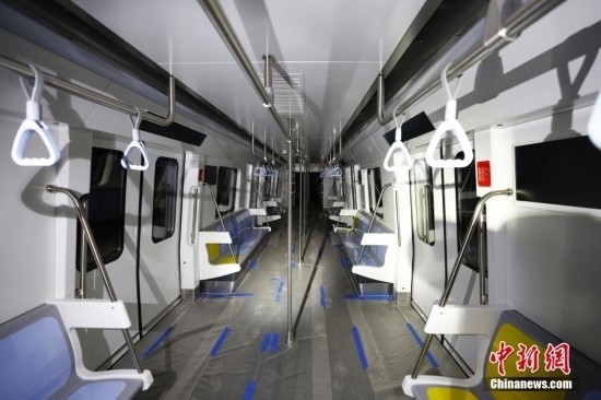 2月20日,在東壩車輛段內(nèi)停放的北京地鐵12號(hào)線列車車廂內(nèi)景。北京地鐵12號(hào)線正線全長為29.6km,西起西四環(huán)四季青橋南,東至東壩北街,途經(jīng)海淀、西城、東城、朝陽四個(gè)行政區(qū),全線共設(shè)21座車站,其中換乘站15座,全線建成通車后,將與4號(hào)線、5號(hào)線、8號(hào)線等12條線路實(shí)現(xiàn)換乘。當(dāng)前12號(hào)線車輛陸續(xù)進(jìn)場,工程正在加速推進(jìn)。中新社記者 富田 攝