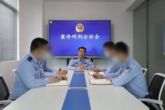 圖為黃日和同事召開(kāi)案件研判分析會(huì)。