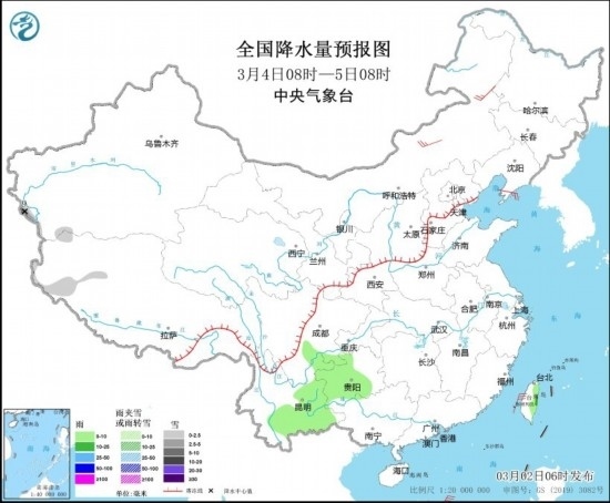 全國降水量預(yù)報圖(3月3日08時-4日08時)圖片來源:中央氣象臺網(wǎng)站