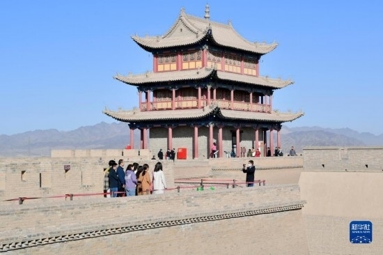 3月4日,游客在嘉峪關(guān)關(guān)城景區(qū)參觀游覽。