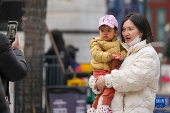 3月19日,游客在北京前門大街商圈游玩。