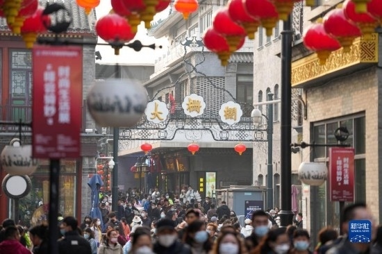 當日,北京前門大街商圈游人如織,眾多市民游客在這里參觀游覽。