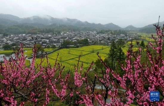 仲春時(shí)節(jié),細(xì)雨如煙,安徽省黃山市黟縣處處春意盎然,田園花海與鱗次櫛比的徽派建筑相映成趣,游人徜徉其間,感受詩情畫意的生態(tài)鄉(xiāng)村。
