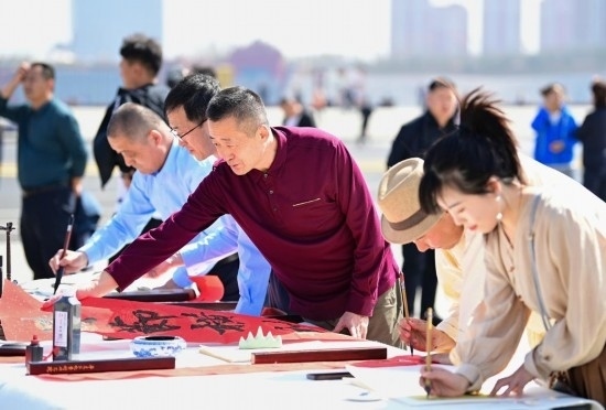 當(dāng)日,內(nèi)蒙古鄂爾多斯市康巴什區(qū)在亞洲雕塑藝術(shù)主題公園舉辦“紙鳶飛舞頌春色”系列活動(dòng),風(fēng)箏愛好者和文學(xué)書法愛好者在活動(dòng)中彩繪風(fēng)箏,詠詩(shī)賦詞,放飛紙鳶,享受春光。
