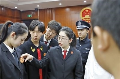 南開區(qū)法院邀請(qǐng)學(xué)生體驗(yàn)“模擬法庭”。