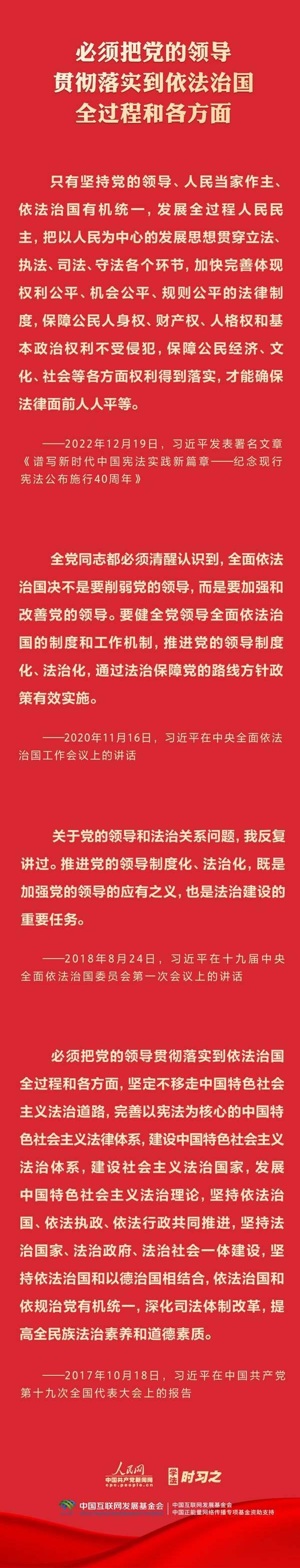 今年是貫徹落實(shí)黨的二十大精神的開局之年。中共中央政治局決定從今年4月開始,在全黨自上而下開展學(xué)習(xí)貫徹習(xí)近平新時(shí)代中國特色社會主義思想主題教育。習(xí)近平法治思想是習(xí)近平新時(shí)代中國特色社會主義思想的重要組成部分,人民網(wǎng)·中國共產(chǎn)黨新聞網(wǎng)推出學(xué)法時(shí)習(xí)之·學(xué)習(xí)習(xí)近平法治思想系列策劃,本篇聚焦“堅(jiān)持黨對全面依法治國的領(lǐng)導(dǎo)”。