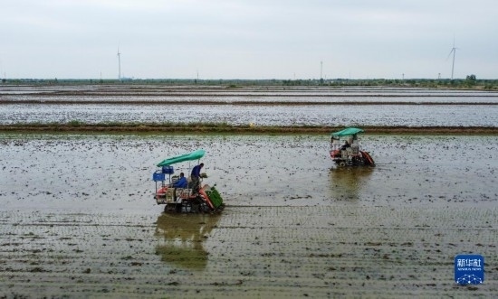 臨近立夏節(jié)氣,天津市各涉農(nóng)區(qū)組織開(kāi)展大規(guī)模機(jī)械化水稻插秧,田間地頭一派繁忙景象。