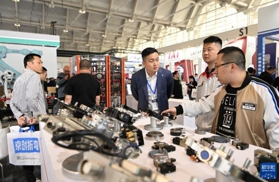 5月8日,在國(guó)家會(huì)展中心(天津),觀眾參觀展會(huì)上展出的工業(yè)設(shè)備。