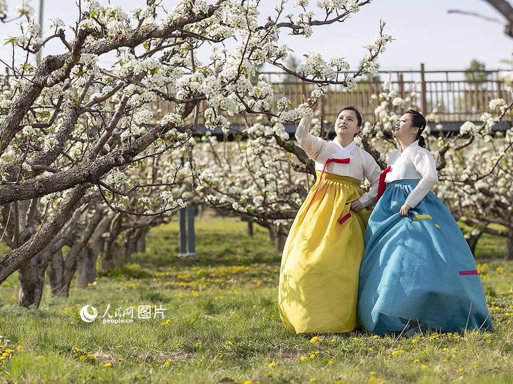5月11日,吉林省延邊州龍井市萬(wàn)畝梨園迎來(lái)梨花盛開(kāi)期。走在梨樹(shù)下,游客們載歌載舞,彈琴賞花,拍照留念。人民網(wǎng) 李洋攝