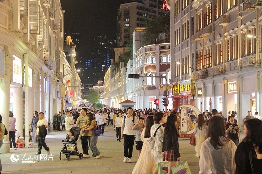 5月13日晚,廈門(mén)中山路人潮涌動(dòng)。人民網(wǎng)記者 陳博攝