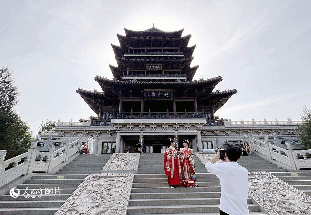 今年以來(lái),濟(jì)南大明湖畔的“江北第一樓”超然樓因其獨(dú)特的人文氣息和景觀氣質(zhì)火爆網(wǎng)絡(luò),成為爆火“出圈”的網(wǎng)紅打卡地。5月16日,在大明湖超然樓前,身穿古代服飾打卡拍照的游客絡(luò)繹不絕,在山色與湖光之間盡展古韻美感。人民網(wǎng)記者 劉祺攝
