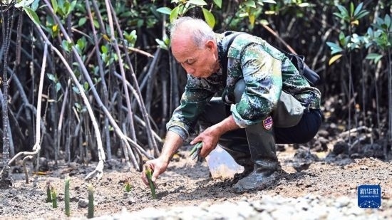 今年68歲的莫積瑞老人,1993年開始在廣西山口紅樹林保護區(qū)管理處保護員崗位任職。2015年,莫積瑞退休,因為經(jīng)驗豐富被返聘,繼續(xù)從事紅樹林保護工作。