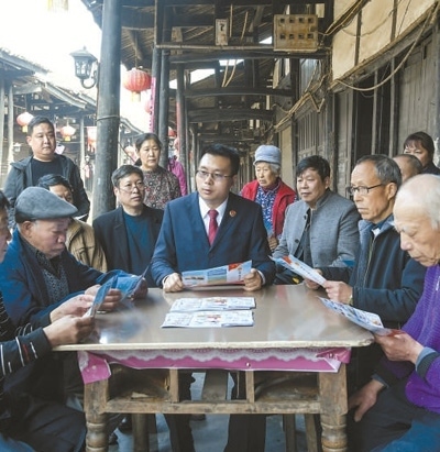 四川省廣安市廣安區(qū)人民檢察院干警向居民宣講法律知識,引導(dǎo)居民積極主動參與保護(hù)生態(tài)環(huán)境等,為檢察公益訴訟提供有效線索。張國盛攝(人民視覺)