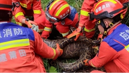 ·莆田一農(nóng)戶(hù)家每月少一只羊,家附近發(fā)現(xiàn)巨蟒,消防抓獲時(shí)蟒腹中尚有只小羊。