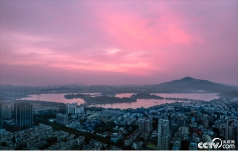 2023年6月16日,南京,玄武湖朝霞滿(mǎn)天,美不勝收。