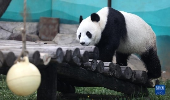 6月26日,“剛剛”在鞍山動物園熊貓館里玩耍。