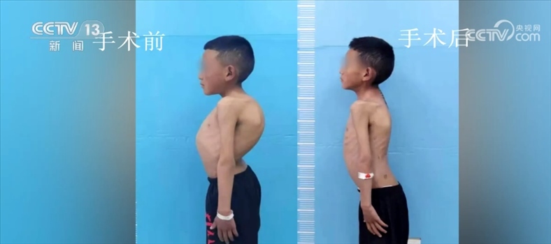 北京大學(xué)人民醫(yī)院脊柱外科主任 劉海鷹:另外這兩個(gè)特別重的孩子,我們做的頭盆環(huán)牽引,牽引上以后,先到康復(fù)醫(yī)院那邊,定期給它一點(diǎn)一點(diǎn)撐開(kāi),差不多兩三個(gè)月以后,撐到一定程度以后,把胸腔都打開(kāi)了,肺功能也改善了以后,對(duì)于麻醉對(duì)于手術(shù)來(lái)說(shuō)更安全,另外對(duì)于神經(jīng)功能也比較安全了,在這種前提下我們做一個(gè)固定的矯正的手術(shù)。預(yù)期來(lái)說(shuō),矯正70%-80%應(yīng)該沒(méi)問(wèn)題,矯正到外表上基本上看不見(jiàn)。