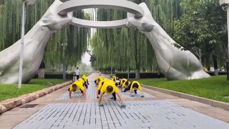 ·男子帶數(shù)十人團(tuán)隊(duì)在公園鱷魚(yú)爬:可鍛煉全身,越來(lái)越多的人加入。