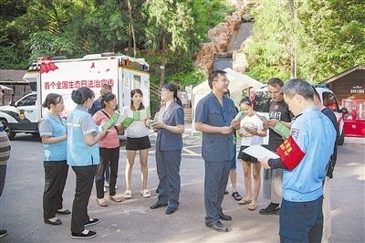 圖①:干警們帶著國徽趕往當事人家開庭。