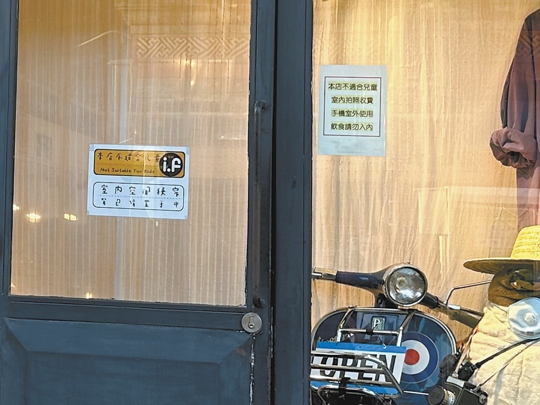 五道營胡同的一家服飾店,雖然門上貼著“本店不適合小孩”的提示,但兒童也可以進店。