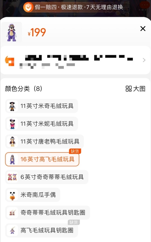 一位不愿意透露姓名的網(wǎng)友告訴紅星新聞,自己9月26日去上海迪士尼樂(lè)園,希望能購(gòu)買(mǎi)“紫龍高飛”商品,然而大約中午就已斷貨?!肮ぷ魅藛T告訴我們,沒(méi)有貨了,不用排隊(duì)了。就是因?yàn)檫@樣,我后來(lái)才高價(jià)買(mǎi)了商品?!?/p>
