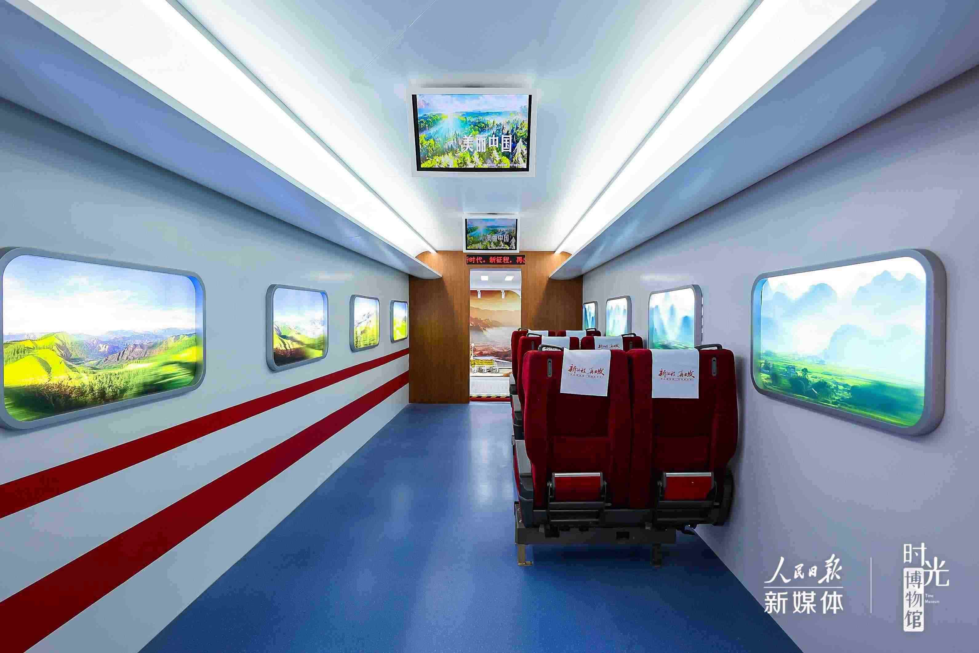 走進(jìn)這座由兩輛雙層雙擴(kuò)容特裝巨型箱體車改裝的“紅房子”里,“復(fù)興號(hào)”高鐵、“天宮”空間站、古今融合的《新千里江山圖》一一映入眼簾??赏垦b的盾構(gòu)機(jī)、可云游的長城、AR觀影……“實(shí)物+影像+互動(dòng)體驗(yàn)”組成的展區(qū),呈現(xiàn)著新時(shí)代十年的非凡成就。