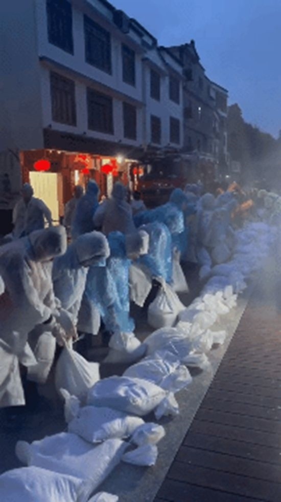 “加快速度裝好沙包!”“一個一個往后傳!”按照錢排鎮(zhèn)政府的統(tǒng)一部署,在保證安全的前提下,200余名學生志愿者參與沙袋填裝、搬運和堆疊等臺風防御工作。