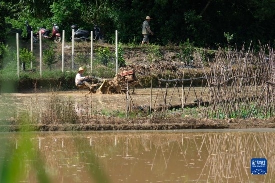 7月21日,農民在南寧市青秀區(qū)長塘鎮(zhèn)耕田。新華社記者 周華 攝