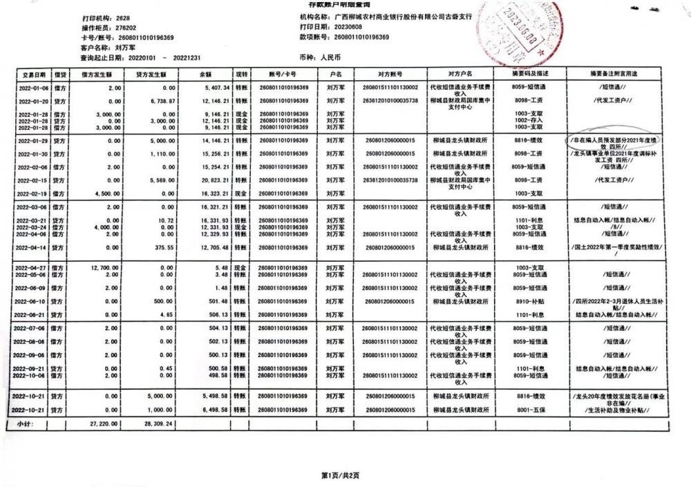 劉萬軍的銀行流水上注明了“非在編人員”。圖/劉萬軍提供