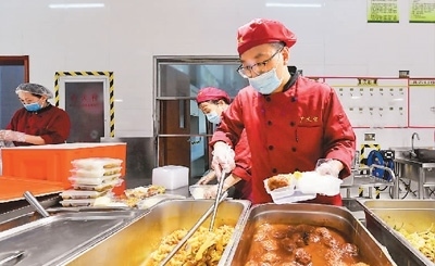 8月1日,在天津市武清區(qū)職業(yè)教育中心臨時安置點(diǎn),工作人員為永定河泛區(qū)轉(zhuǎn)移人員準(zhǔn)備午飯。新華社記者 孫凡越攝