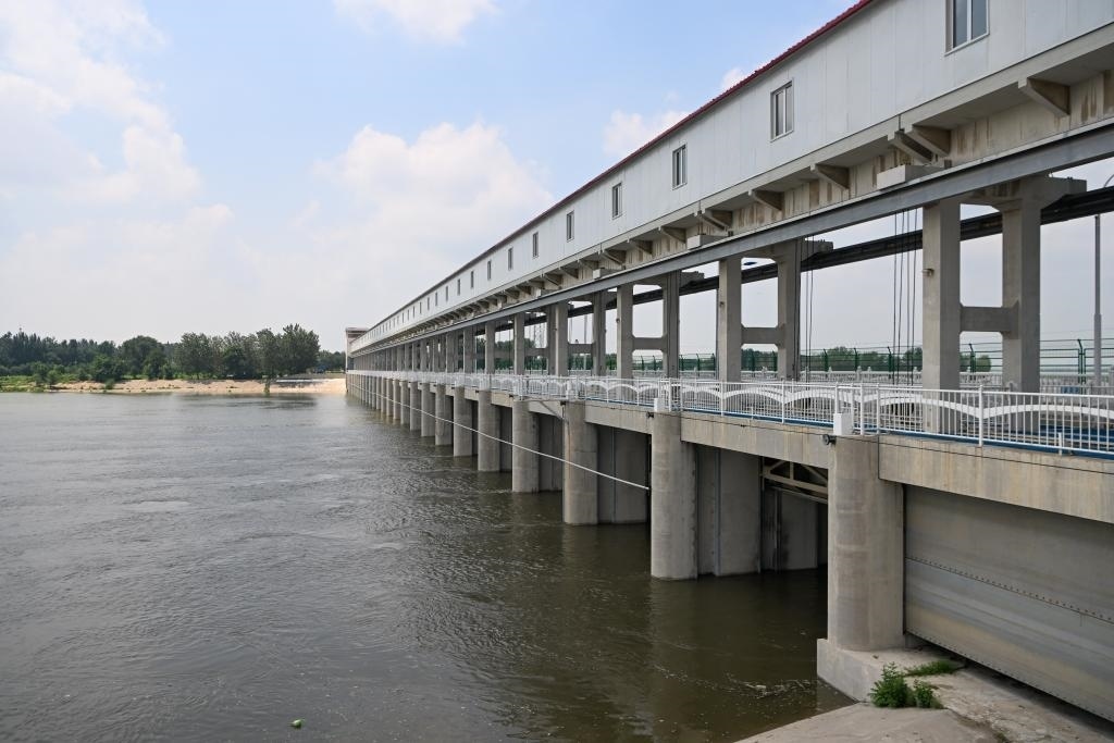 8月2日,上游來水經(jīng)天津獨(dú)流減河進(jìn)洪閘后流入獨(dú)流減河。新華社記者孫凡越 攝