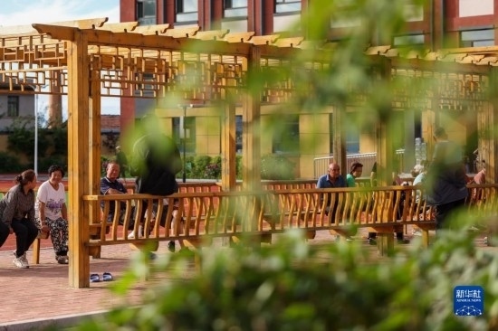 8月11日,居民在吉林省舒蘭市舒蘭三中居民安置點(diǎn)院內(nèi)的長廊里休憩。