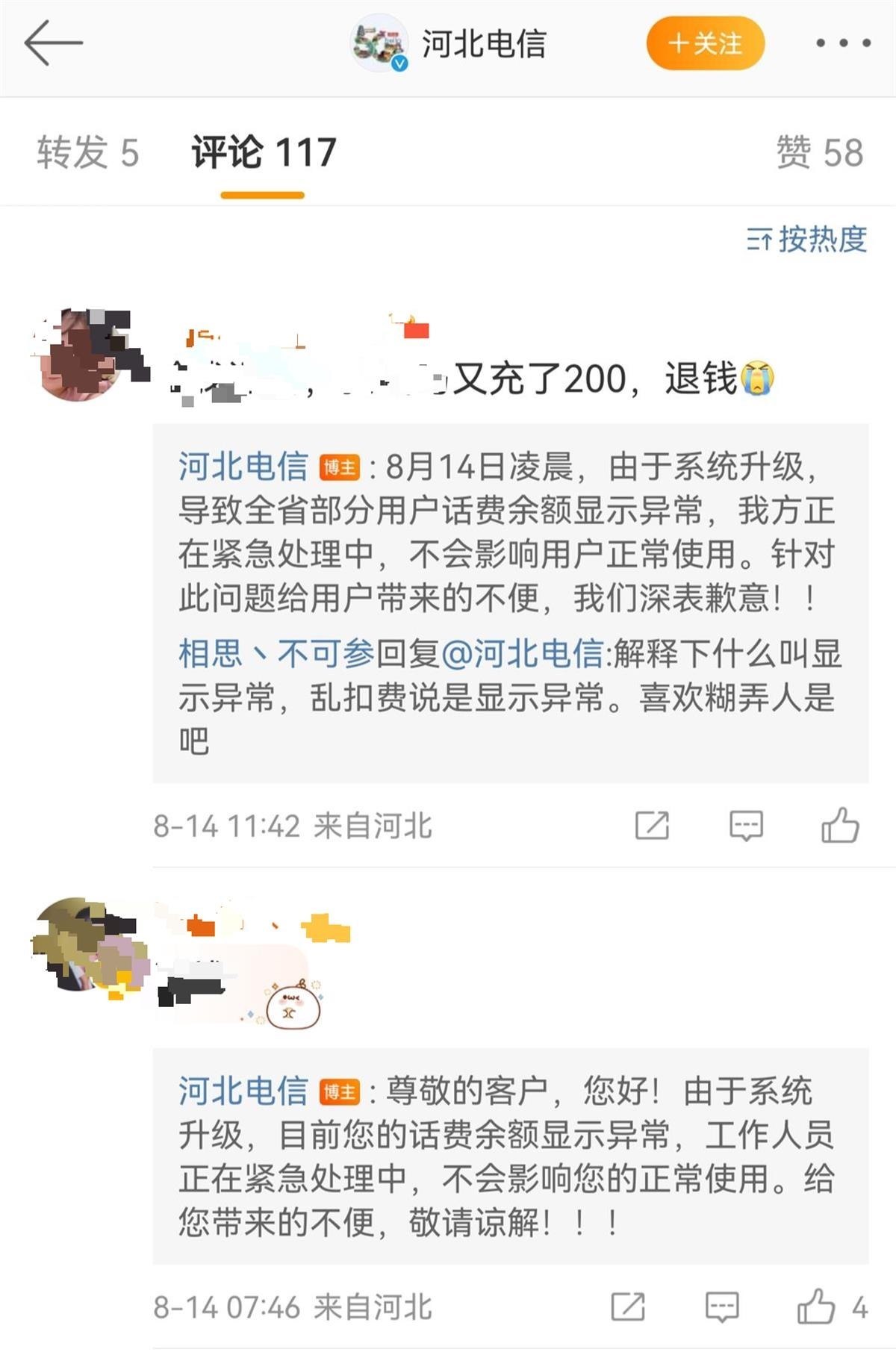 ·河北多名電信用戶(hù)稱(chēng)手機(jī)莫名欠費(fèi),官方:系統(tǒng)升級(jí)導(dǎo)致,不影響通信。