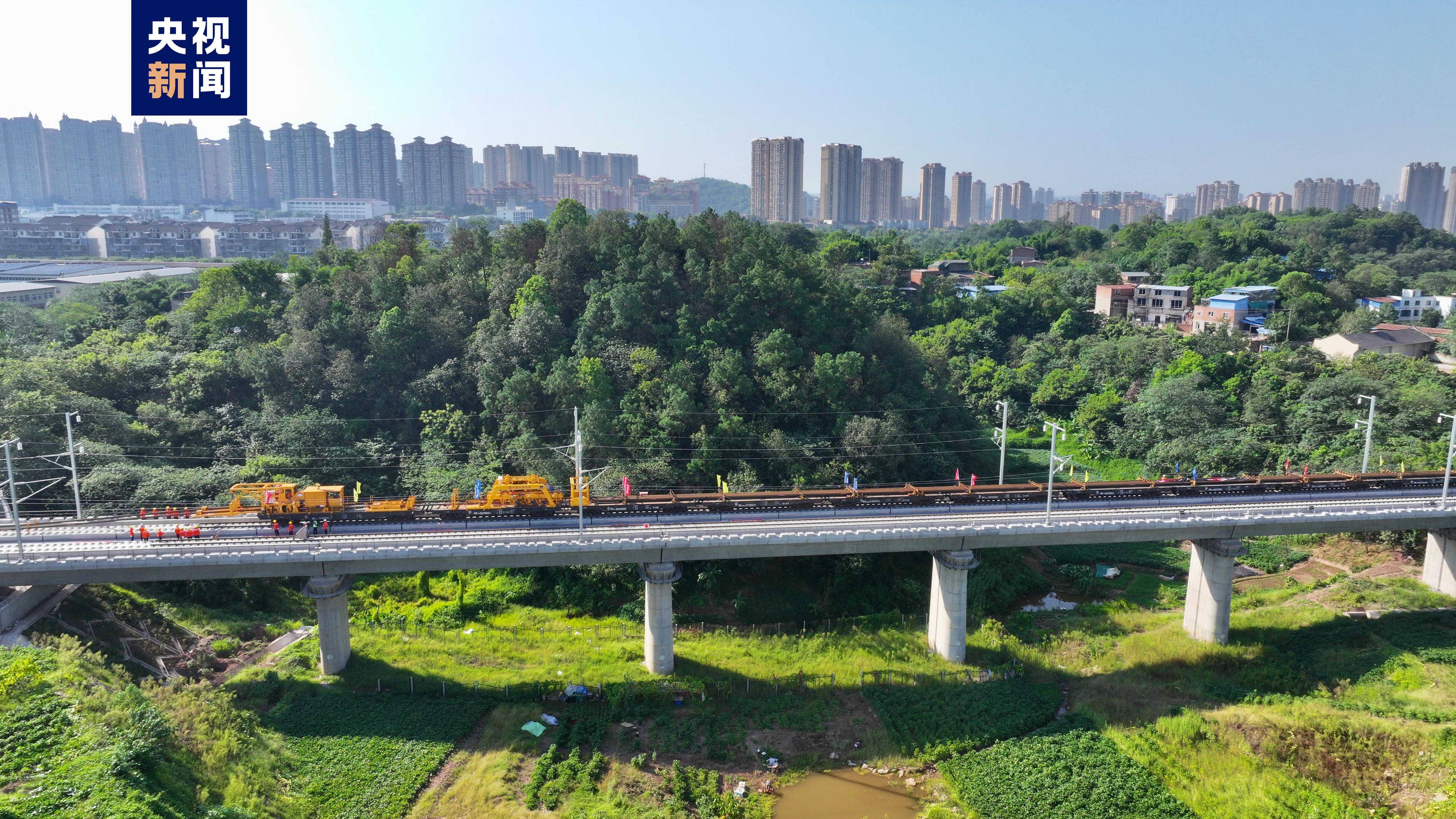 渝昆高鐵是全國鐵路“八縱八橫”主通道之一京昆通道的重要組成部分,渝昆高鐵川渝段位于我國重慶市和四川省境內,正線全長約292公里,設計時速350公里,全線已進入鋪軌、線上工程及站房建設沖刺階段,此次鋪軌(含站線)總里程共約550公里,其中正線約528公里,站線約20公里,95組道岔等施工任務。