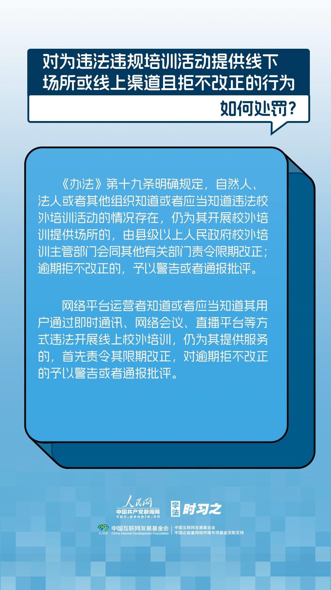 《校外培訓行政處罰暫行辦法》(以下簡稱《辦法》)將于2023年10月15日起施行?!掇k法》提出了校外培訓行政處罰總體要求。規(guī)定適用對象為面向社會招收3周歲以上學齡前兒童、中小學生,違法開展校外培訓的自然人、法人或者其他組織。要求校外培訓行政處罰應當遵循公正、公開的原則,堅持處罰與教育相結合,引導自然人、法人或者其他組織自覺守法,共同抵制校外培訓違法行為,營造有利于學生成長成才的良好環(huán)境。