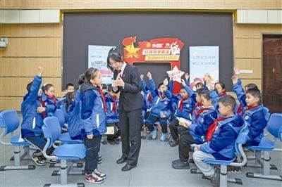 圖⑨:送法進校園。圖為諸暨法院法官來到浣東小學(xué)普法授課,結(jié)合小故事、小案例為同學(xué)們答疑解惑,豐富法律知識。