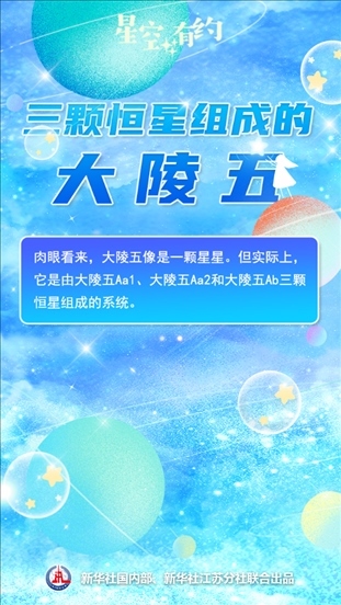 中國科學(xué)院紫金山天文臺(tái)科普主管王科超說,在人們?nèi)庋劭磥恚罅晡逯皇乔锛緰|北方向天空中一個(gè)遙遠(yuǎn)的亮點(diǎn),像是一顆星星。但實(shí)際上,它是由大陵五Aa1、大陵五Aa2和大陵五Ab三顆恒星組成的系統(tǒng)。這三顆恒星被引力“束縛”在一起,共同組成大陵五這個(gè)三合星系統(tǒng)。系統(tǒng)之中三顆星的相對(duì)位置還會(huì)發(fā)生變化,并影響到大陵五的亮度。天文學(xué)上把這種亮度時(shí)常變化的恒星或恒星系統(tǒng)稱作變星。大陵五也是秋季星空著名星座英仙座中的第二亮星。