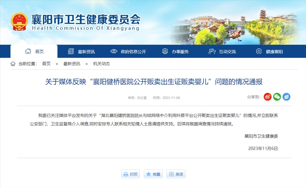 ·醫(yī)院院長(zhǎng)被舉報(bào)涉嫌販賣出生證,襄陽(yáng)衛(wèi)健委通報(bào):聯(lián)系公安部門、衛(wèi)生監(jiān)督局介入調(diào)查,同時(shí)安排專人聯(lián)系相關(guān)知情人士懇請(qǐng)?zhí)峁┲С?。后續(xù)將根據(jù)調(diào)查情況持續(xù)通報(bào)。