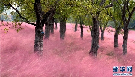 近日,在安徽省阜陽(yáng)市泉河濕地景觀帶,大片粉黛亂子草進(jìn)入最佳觀賞期。粉色的花海如云似霧,夢(mèng)幻唯美。