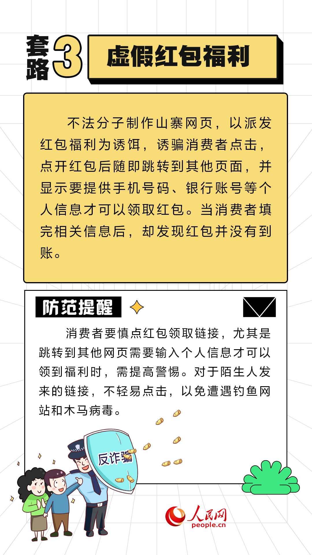 人民網北京11月10日電 (周靜圓)近期,“雙11”促銷活動如火如荼地進行中。不法分子也伺機而動,設置各式各樣陷阱。人民網“求真”欄目整理了六種常見的套路,提醒大家提高警惕,守好“錢袋子”。