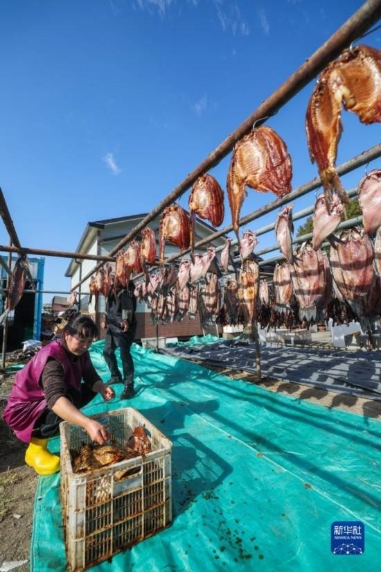 浙江省諸暨市白塔湖湖畔的村鎮(zhèn)居民有冬季曬魚(yú)干迎新年的傳統(tǒng)習(xí)俗。臨近年末,當(dāng)?shù)卮迕裼貌稉频那圄~(yú)、鳊魚(yú)、白條魚(yú)等晾曬魚(yú)干,迎接新年、增收創(chuàng)收。