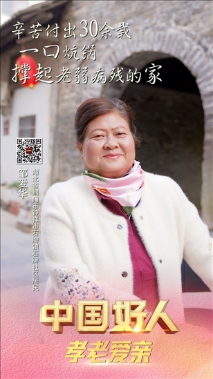 鄒愛華,女,1962年5月生,湖北省荊門市鐘祥市石牌鎮(zhèn)石牌社區(qū)居民。鄒愛華自幼腿部殘疾,她與聽障丈夫相攙相扶,支起一口燒鍋?zhàn)鍪[餅,20余年誠(chéng)信經(jīng)營(yíng),供養(yǎng)兩個(gè)女兒完成學(xué)業(yè);她30余年無(wú)悔付出照顧殘疾親人,讓他們安心生活;她熱心幫助街坊鄰居,成為遠(yuǎn)近有名的“街長(zhǎng)”。