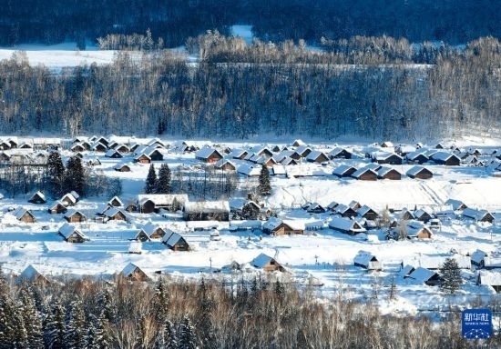 1月17日拍攝的新疆阿勒泰地區(qū)布爾津縣禾木村(無(wú)人機(jī)照片)。