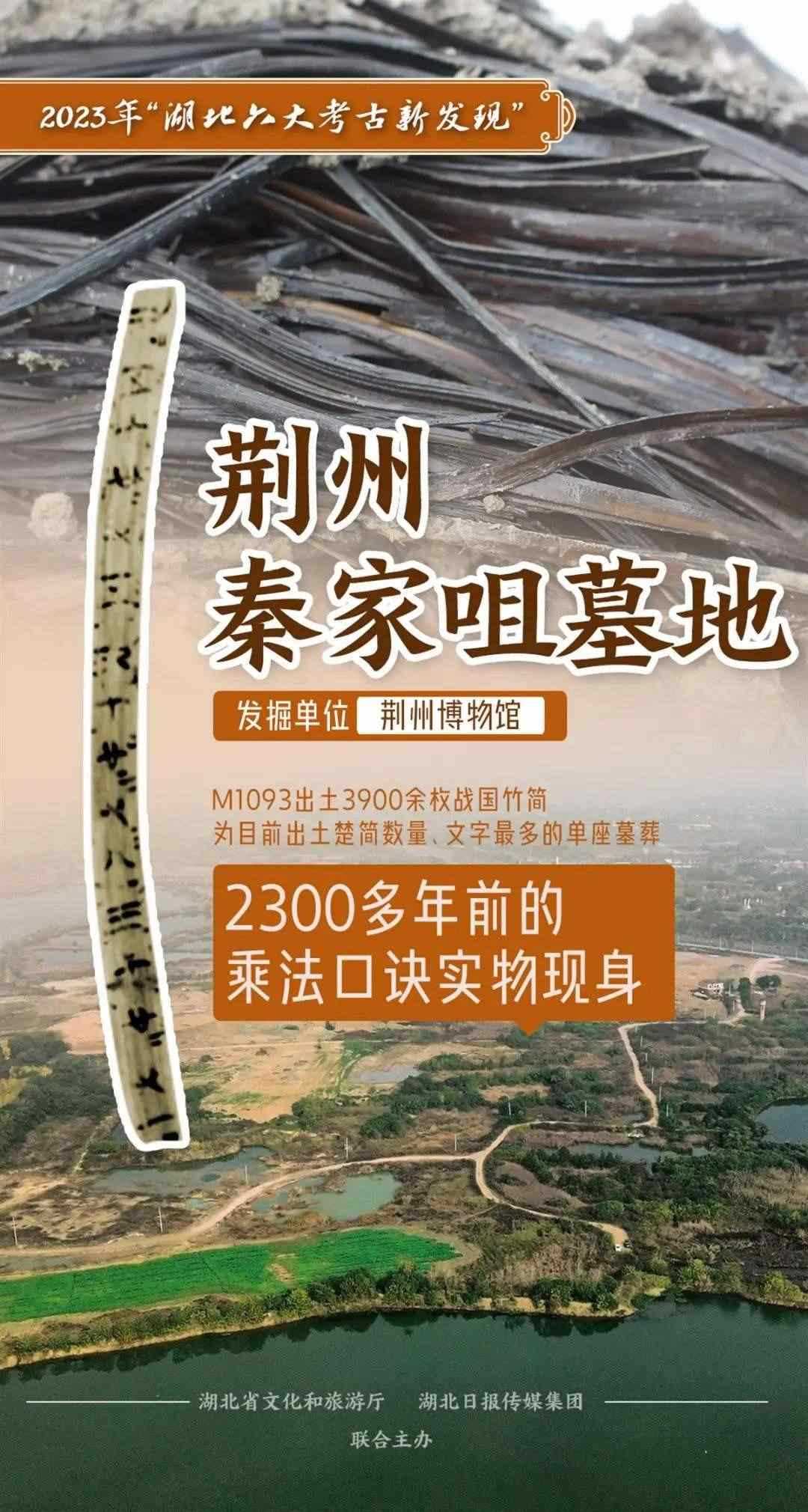 荊州市秦家咀墓地考古發(fā)掘大量東周楚墓,時(shí)代為戰(zhàn)國(guó)中期的M1093出土楚簡(jiǎn)揭取編號(hào)3910枚,字?jǐn)?shù)約30000字,是目前所知單座墓葬中出土楚簡(jiǎn)數(shù)量、文字最多者,是近年來湖北乃至全國(guó)簡(jiǎn)牘考古的重要發(fā)現(xiàn)。