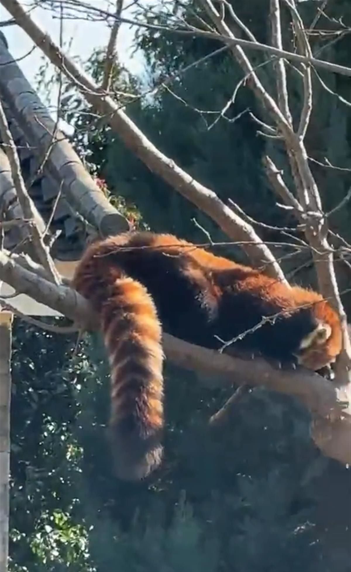 1月25日上午,極目新聞?dòng)浾呗?lián)系上視頻發(fā)布者,對(duì)方解釋稱(chēng),其實(shí)動(dòng)物園有兩只小熊貓,它們都藏在樹(shù)上了,自己第一眼沒(méi)看到,有些驚訝。其中一只小熊貓?jiān)谝曨l的最后三秒也出現(xiàn)了。