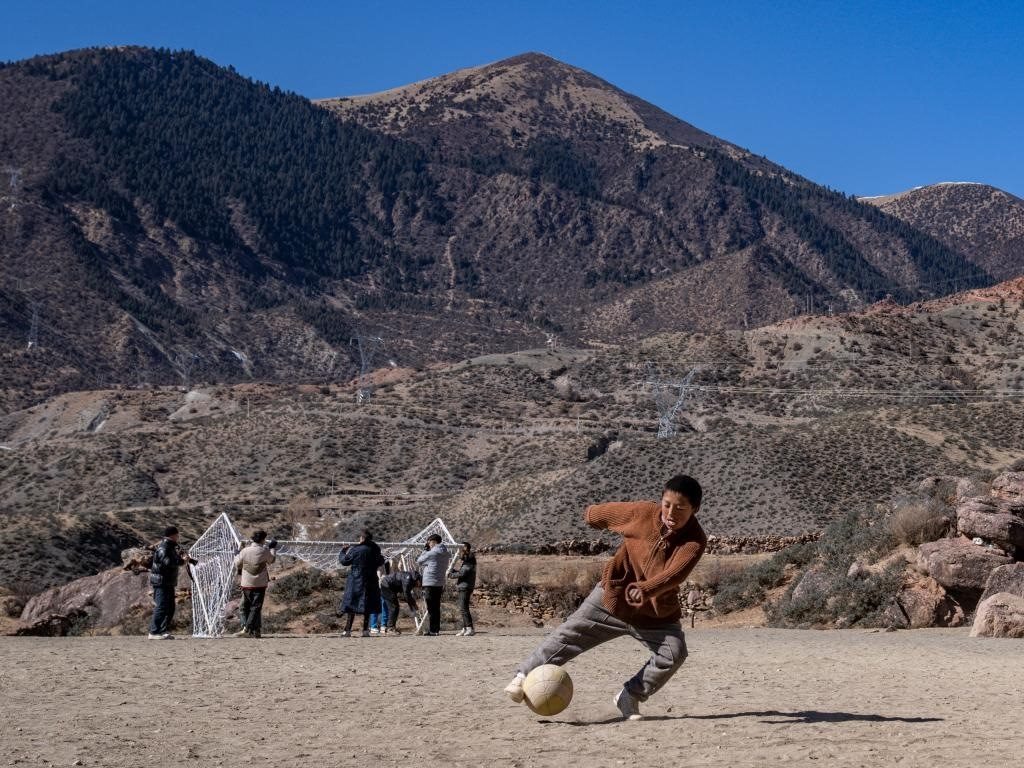 等待焊接的一會兒工夫,村里的孩子們也要跑來和嘎瑪群美踢兩腳