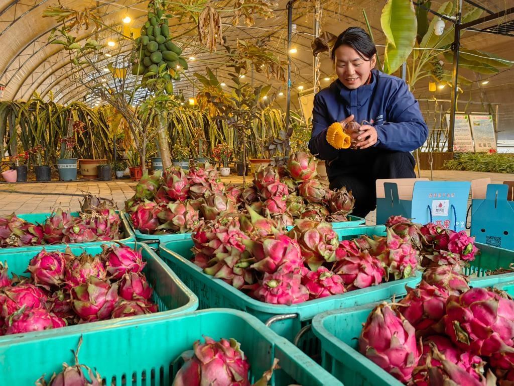 楊凌青皮她園火龍果種植專業(yè)合作社運營經理郭娟茹,一邊忙碌,一邊透出幾分感慨:“南方水果成功‘移居’西北,成為合作社、群眾增收的‘致富果’。農業(yè)科技的發(fā)展,讓咱北方人吃到了新鮮的火龍果?!?/p>
