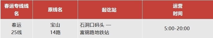 注:石洞口碼頭春運(yùn)專(zhuān)線(xiàn)運(yùn)營(yíng)日期為2月14日至3月5日。