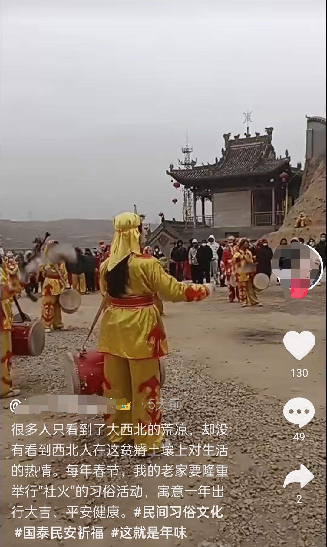 2月26日,該網(wǎng)民繼續(xù)發(fā)布配以社火表演隊伍的視頻,并配文“看到這個視頻,就特別痛心,我那受傷住院的隊友們。”